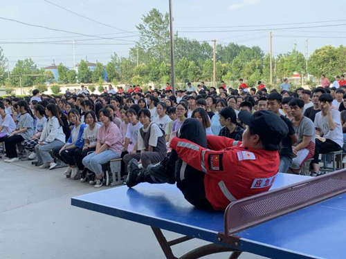 活動現(xiàn)場,消防教官為同學們講解了防火安全的重要性,火災的預防和救助,演示了滅火器的使用方法;西華縣紅十字會救護師耿佳佳、姚華杰二人為同學們現(xiàn)場生動講解演示“珍愛生命、預防溺水”的生動安全教育課,讓同學了解溺水的危害性,做好有效預防溺水的重要性,演示發(fā)生溺水怎么辦及對溺水者如何做胸外心臟按壓,同學們認真聆聽和學習,學會了判斷呼吸心跳停止、按壓手法、按壓位置、打開氣道方法、判斷呼吸心跳是否恢復等急救技能。同學還掌握了溺水急救基本標準:打開氣道、人工呼吸、胸外按壓。
