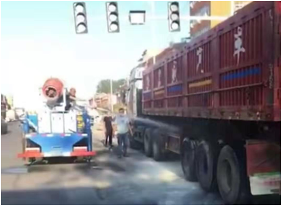 7月6日早上6時40分,一輛貨車由東至西行駛到西扶超限檢測站負責的環(huán)保檢測卡點時輪胎突然起火,執(zhí)法人員發(fā)現(xiàn)后,立即用車載喇叭喊話提醒司機停車,此時車輛正好停在值勤卡點紅綠燈處,一旦火勢不受控制,將給司機及周邊群眾帶來不可預測的危險與損失,帶班站長李建東一邊組織人員進行救火,一邊通知站長劉洪亮。得到警情后,劉洪亮站長立即組織增援,同時指令張光輝、劉伯倫駕駛站內高壓撒水車迅速趕往事故現(xiàn)場,經過共同努力,著火處被撲滅,避免了一場火災事故的發(fā)生。事后,貨車司機十分感動,拉著執(zhí)法人員的手深表謝意。