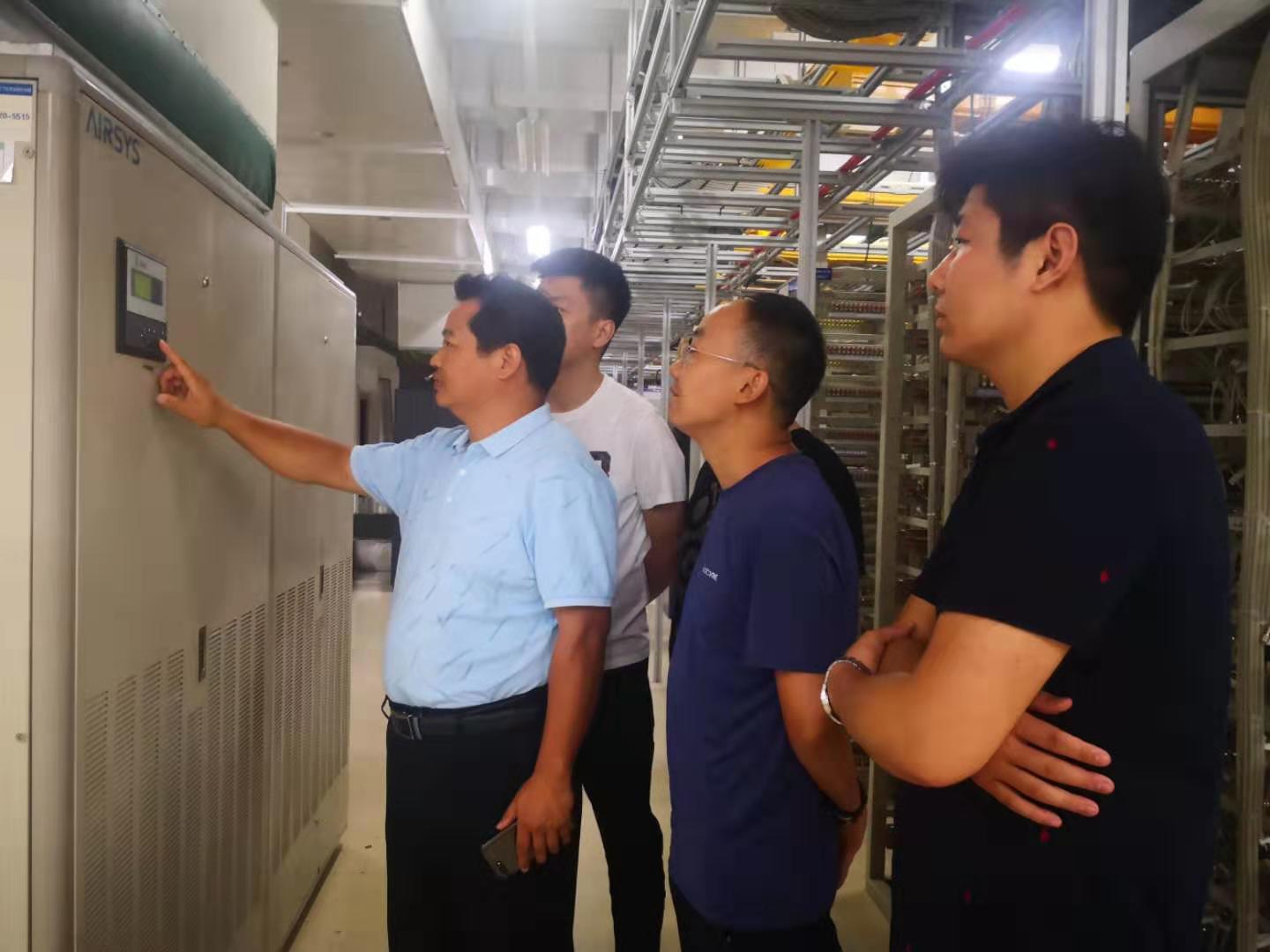 郭彥軍(左一)和同事們在查看空調加濕系統(tǒng)