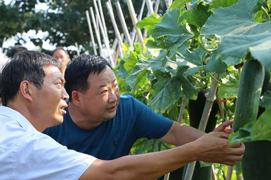 炎炎夏日,大棚下的侯俊昌汗水再次濕透,他撫摸著一串串紫紅色的葡萄說,這都是改變貧窮的“紫珍珠”啊,只要我們班子上下齊心協(xié)力,小小的葡萄也能幫我們“拔掉窮根?!辈粌H僅是葡萄產(chǎn)業(yè),村里的婦聯(lián)主任徐桂蘭也主動帶頭創(chuàng)業(yè),承包了80畝的田地,種起了優(yōu)質(zhì)冬瓜,畝產(chǎn)上萬斤,通過駐村幫扶,提供產(chǎn)銷信息,遠銷到省內(nèi)外多地。秋季種小麥、夏季種冬瓜的模式,畝產(chǎn)收益均在4000元以上。她平時鼓勵村里貧困戶到冬瓜地打工,每年帶動近20戶貧困戶,每戶增加收益近5000元?!焙羁〔嬖V我們,“產(chǎn)業(yè)扶貧,造血扶貧在位口村已經(jīng)深深扎根,同時也吸引了很多在外務工的有識青年返鄉(xiāng)創(chuàng)業(yè),有的做起了尾毛生意、有的做起了毛刷生意?,F(xiàn)在全村興起人人講創(chuàng)業(yè),戶戶拼經(jīng)濟的良好氛圍。”