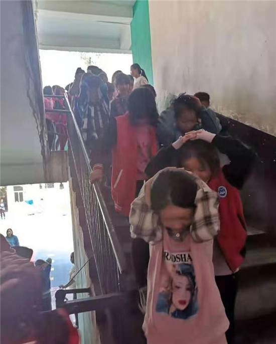 當(dāng)日9時(shí)許,一陣急促的警報(bào)聲在該校園內(nèi)響起,防震防踩踏緊急疏散安全演練活動(dòng)正式拉開(kāi)帷幕。各小組成員按照演練方案要求迅速到達(dá)各自負(fù)責(zé)的指定位置,同學(xué)們?cè)诎嘀魅卫蠋煹囊龑?dǎo)下,雙手抱頭或用書包、書本護(hù)住頭部,迅速并安全有序地向操場(chǎng)撤離,班主任集結(jié)隊(duì)伍,清點(diǎn)人數(shù)并向演練指揮組報(bào)告撤離情況。整個(gè)演練過(guò)程反應(yīng)迅速、協(xié)調(diào)統(tǒng)一,共計(jì)用時(shí)6分20秒。