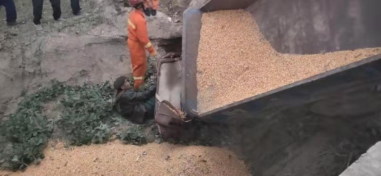接警后,鄲城消防大隊(duì)立即出動(dòng)3輛消防車(chē)15名指戰(zhàn)員前往處置。經(jīng)偵查發(fā)現(xiàn),側(cè)翻車(chē)輛是一輛農(nóng)用三輪車(chē),車(chē)上拉有約2噸散裝玉米?,F(xiàn)場(chǎng)玉米灑落一地,駕駛員約六十歲,左腿被農(nóng)用三輪車(chē)前輪壓住,無(wú)法脫身,加之即將天黑,當(dāng)時(shí)天氣較冷,如不及時(shí)處置,后果不堪設(shè)想。