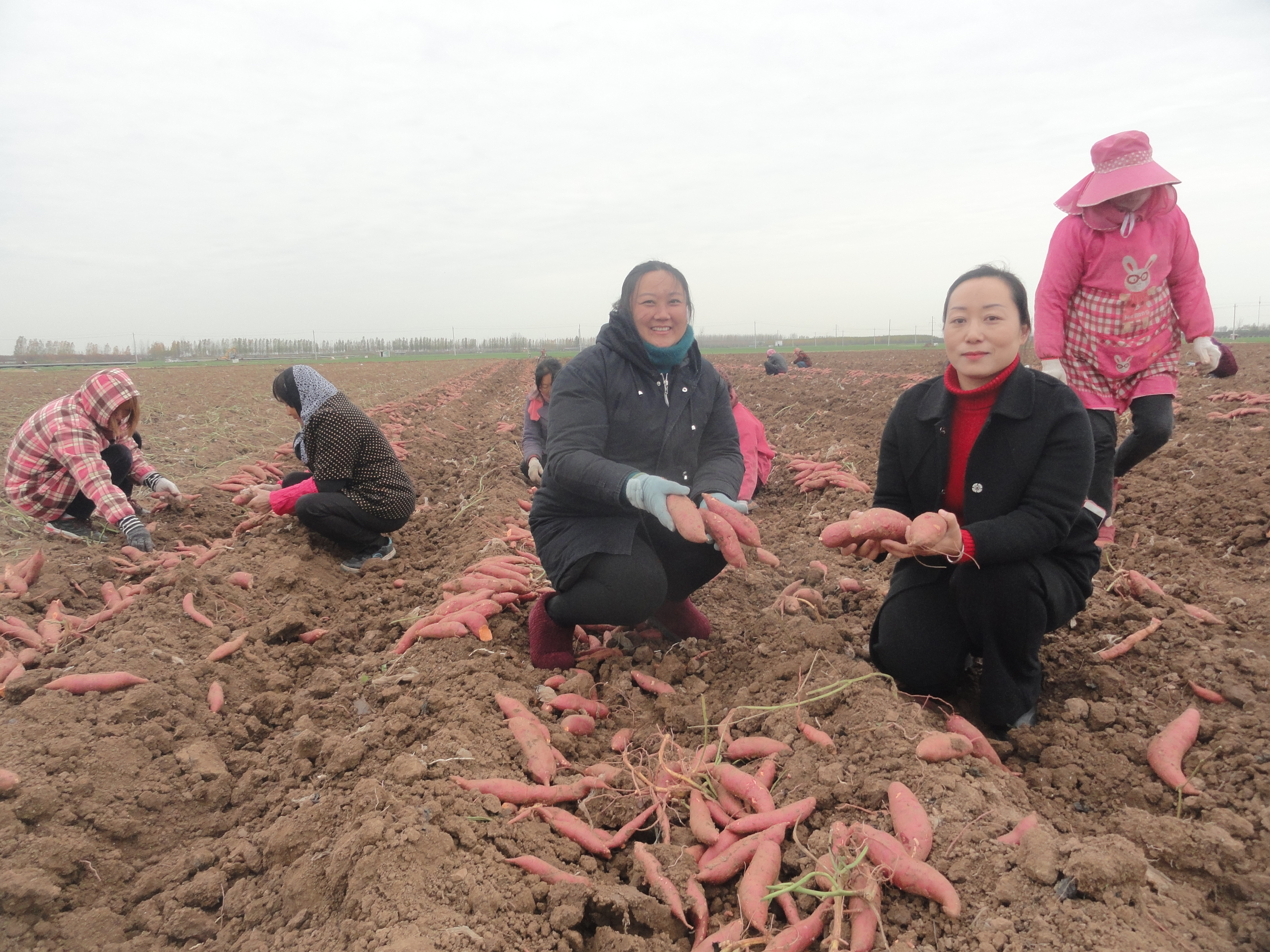 11月25日,商水縣張莊鄉(xiāng)大郭莊村返鄉(xiāng)農(nóng)民工郭燕燕(左)與鄉(xiāng)干部張麗娟(右)說(shuō)起紅薯,滿臉洋溢著豐收的喜悅,她種植的100畝優(yōu)質(zhì)紅薯正在收獲銷(xiāo)售。