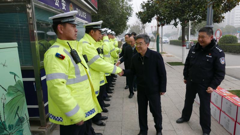 慰問(wèn)中,皇甫立新、劉國(guó)慶一行首先來(lái)到縣交警大隊(duì)城區(qū)中隊(duì)五岔路口執(zhí)勤點(diǎn),同正在執(zhí)勤的交通民警一一握手,并代表縣委、縣政府向交警大隊(duì)全體民警、協(xié)警一年來(lái)付出的努力和辛苦表示感謝和問(wèn)候,囑咐他們要注意安全,保重身體。在詳細(xì)了解了春節(jié)期間治堵保暢工作情況匯報(bào)后,皇甫立新對(duì)交警大隊(duì)全體民警和輔警在春節(jié)期間放棄和家人團(tuán)聚,舍小家顧大家,堅(jiān)守在道路交通安全管理崗位的工作態(tài)度,以及主動(dòng)作為,敢于擔(dān)當(dāng),無(wú)私奉獻(xiàn)、任勞任怨的工作作風(fēng)給予高度肯定。并希望大家在春節(jié)期間,繼續(xù)發(fā)揚(yáng)吃苦耐勞的精神,全力做好道路安全保障工作,確保春節(jié)期間全縣道路交通安全暢通,讓全縣人民度過(guò)一個(gè)平安、祥和的春節(jié)。同時(shí),縣交警大隊(duì)要進(jìn)一步做好執(zhí)勤民警后勤保障及防寒保暖工作,加強(qiáng)人員輪換上崗,切實(shí)保障公安交警切身利益,解決他們的后顧之憂。