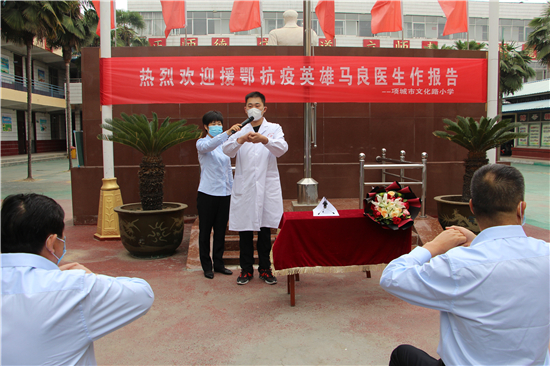 為彰顯榜樣力量,傳承抗“疫”精神,5月6日,項城市文化路小學(xué)邀請項城援鄂抗“疫”英雄代表項城市中醫(yī)院脾胃肝膽科護(hù)士馬良來校為廣大師生作報告,講述戰(zhàn)“疫”背后的故事,厚植愛國主義情懷。