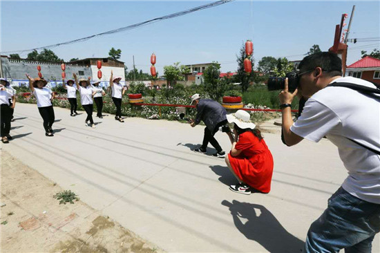 采風(fēng)期間,10多名專業(yè)攝影師奔赴奉母鎮(zhèn)前邵村、前于王村以及孝賢碑林等地,進(jìn)行實(shí)地探訪采風(fēng)。前邵村是當(dāng)?shù)赜忻膫鹘y(tǒng)村落,村里文化氛圍濃厚,先后走出10多位戲曲方面的國家一級演員。在該村,一支業(yè)余的文藝宣傳隊(duì)引起攝影家們關(guān)注的目光。大家即興表演了兩三個節(jié)目,引得攝影家們極大興趣,不停按下快門拍攝。