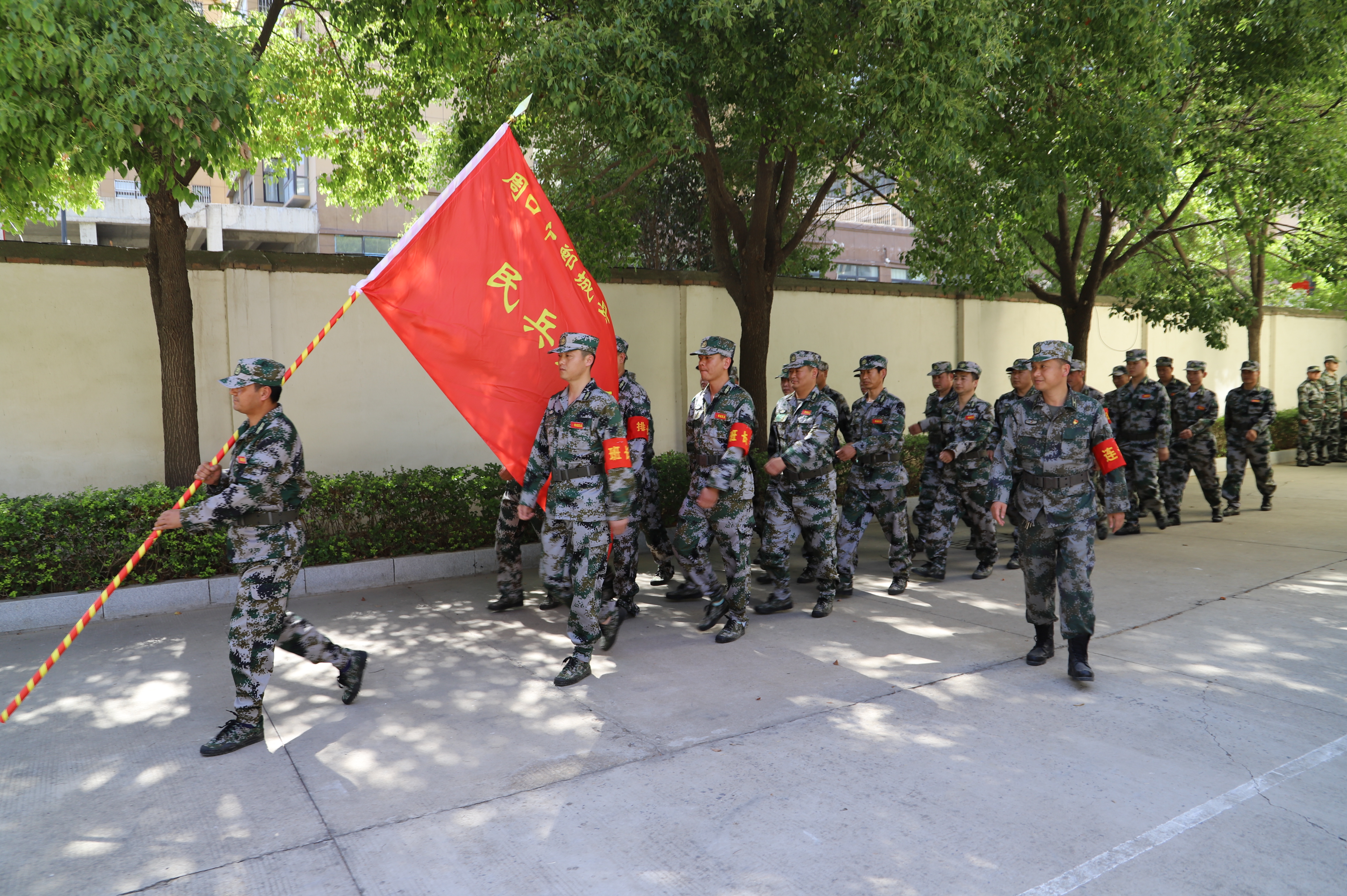 軍哨嘹亮、全連集結。點驗時刻,全體民兵聽到哨聲迅速集合、列隊完畢,操場上、烈日下,民兵們不畏烈日如火、不顧汗流浹背,整理隊形、整齊劃一。