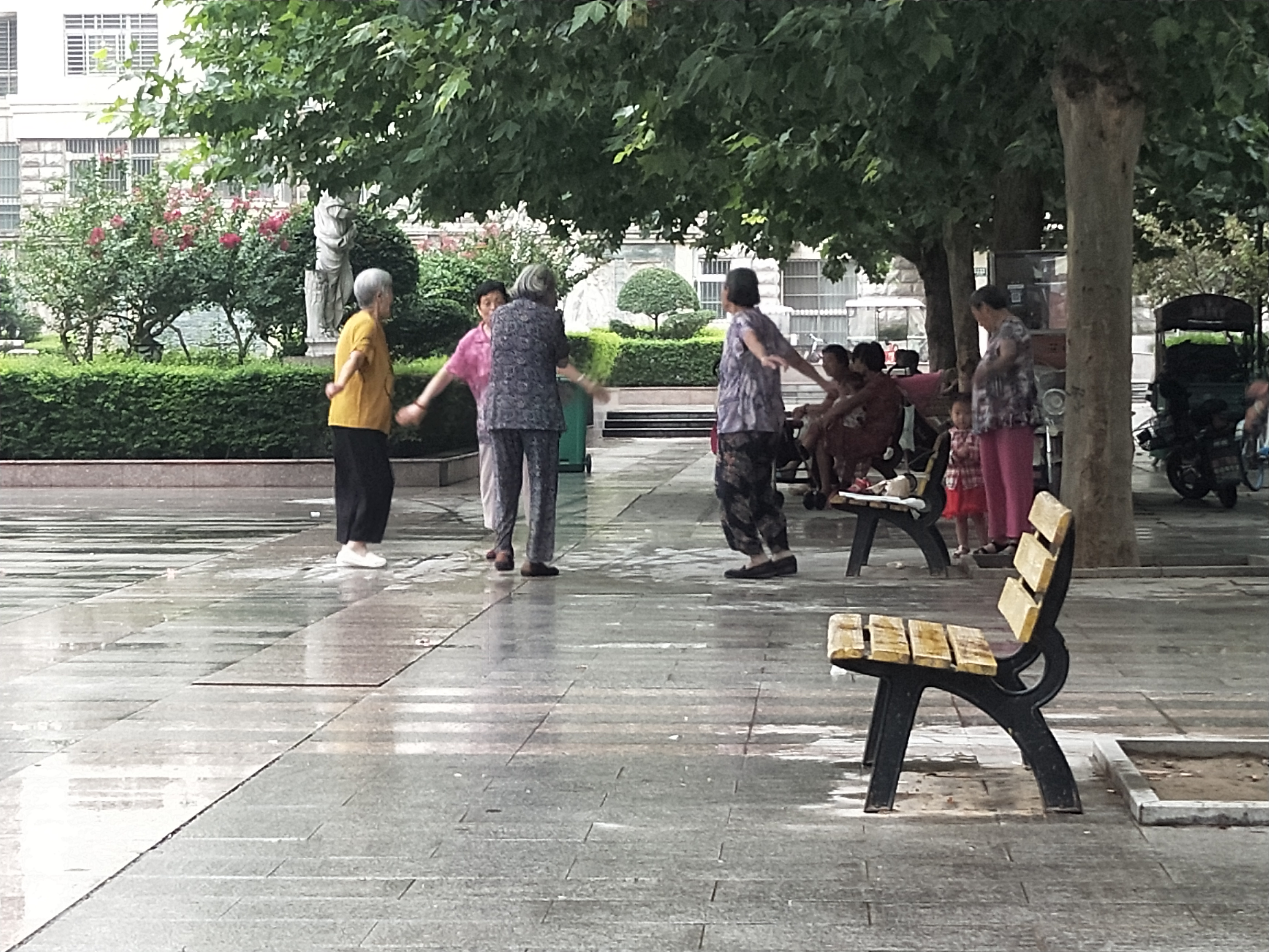 在經(jīng)開(kāi)區(qū)太昊路香榭麗舍小區(qū)北門小區(qū)噴泉廣場(chǎng)的旁邊,上午8點(diǎn)左右,這里熱鬧了。幾位70多歲的老年人,在這里跳起老年健身操,音樂(lè)飄到居民家中,給一些住戶帶來(lái)了困擾。7月24日,記者來(lái)到香榭麗舍小區(qū)詢問(wèn)此事,一位散步的居民說(shuō):“大媽的舞姿很優(yōu)美,要是聲音再小點(diǎn)就更美了?!?/p>