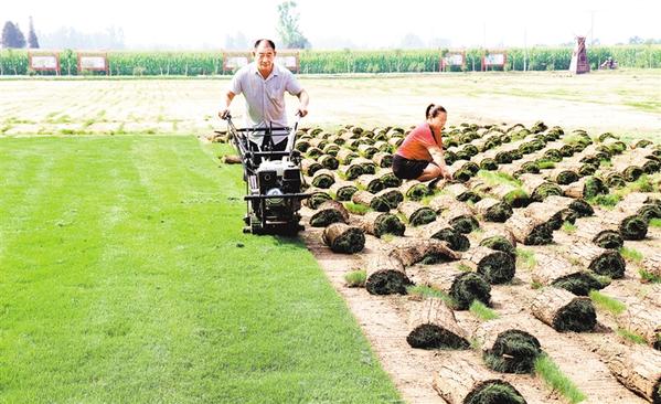 8月10日,扶溝縣韭園鎮(zhèn)小王莊村貧困戶(hù)閆新生、趙貞正在收割草坪。目前,小王莊村共發(fā)展草坪種植1100多畝,有30多戶(hù)建檔立卡貧困戶(hù)通過(guò)出租土地和管理草坪實(shí)現(xiàn)了穩(wěn)定收入,僅草坪一項(xiàng)戶(hù)均年收入可達(dá)4000元以上。谷志方 攝