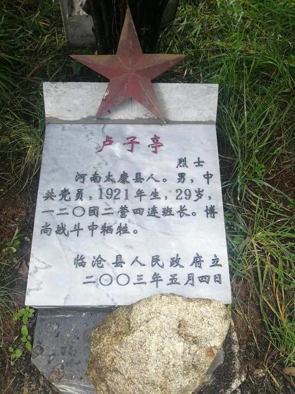 據(jù)悉,盧子亭,河南省周口市太康縣人,生于1921年,是一名中共黨員,是原云南軍區(qū)第14軍120團二營四連班長,1950年9月在云南省臨滄市臨翔區(qū)博尚戰(zhàn)斗中壯烈犧牲,年僅29歲。