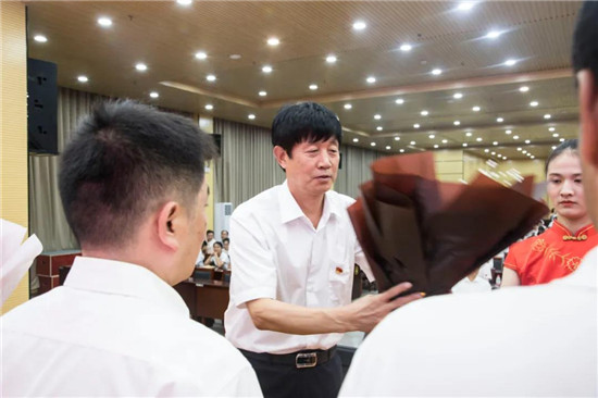 羅明黨宣讀鄲城縣教育體育局對鄲城二高趙耀校長的賀信。局黨組向鄲城二高取得優(yōu)異成績的莘莘學(xué)子表示熱烈祝賀,向辛勤耕耘的全體教職員工表示衷心感謝和親切慰問,并希望二高面對高考改革的滾滾大潮和人民群眾對優(yōu)質(zhì)教育的迫切需求,認(rèn)真總結(jié)經(jīng)驗(yàn),堅(jiān)定辦學(xué)信念,瞄準(zhǔn)更高目標(biāo),進(jìn)一步深化管理改革,優(yōu)化教學(xué)方法,豐厚教育內(nèi)涵,提升辦學(xué)水平,為推動(dòng)鄲城教育高質(zhì)量發(fā)展再添重彩、再立新功!