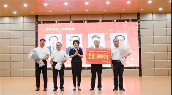 與會領(lǐng)導(dǎo)為40名本科上線增幅獎(jiǎng)、標(biāo)兵教師、新銳獎(jiǎng)、優(yōu)秀學(xué)科組等獲獎(jiǎng)教師代表頒獎(jiǎng)、獻(xiàn)花,并合影留念。