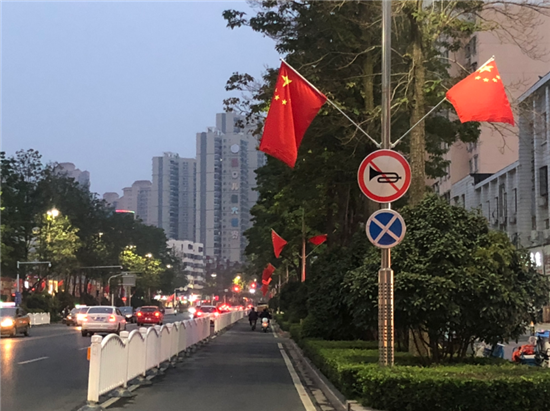 秋風(fēng)徐徐,桂花飄香,旗幟鮮艷,迎風(fēng)飄揚(yáng)。國(guó)慶節(jié)臨近,市區(qū)主要干道、重要窗口區(qū)域都懸掛著國(guó)旗,一路飄“紅”,讓市民在喜慶祥和的氣氛中迎來(lái)第71個(gè)國(guó)慶節(jié)。