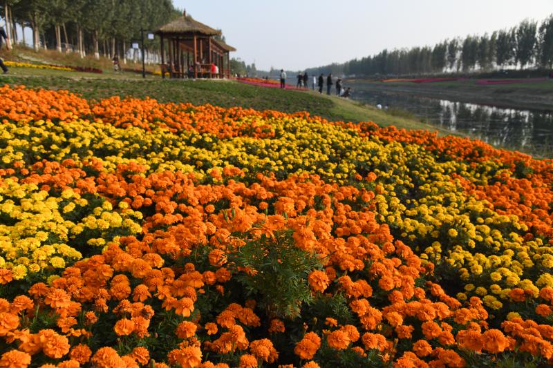10月20日,市民在商水縣高標準農田灌溉渠兩岸游玩。