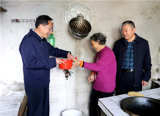 “我這手沒力氣,早就掂不動水桶了。原來都是老伴從外面壓水井把水掂回來,他不在家我就沒辦法做飯?,F(xiàn)在好了,自來水龍頭裝在俺灶臺后邊,一轉(zhuǎn)身兒就行。吃水不忘挖井人,真要感謝共產(chǎn)黨呀?!笨粗鴩W嘩流淌的自來水,錢店鎮(zhèn)張寨行政村白莊村69歲的貧困戶楊保榮感慨地說。