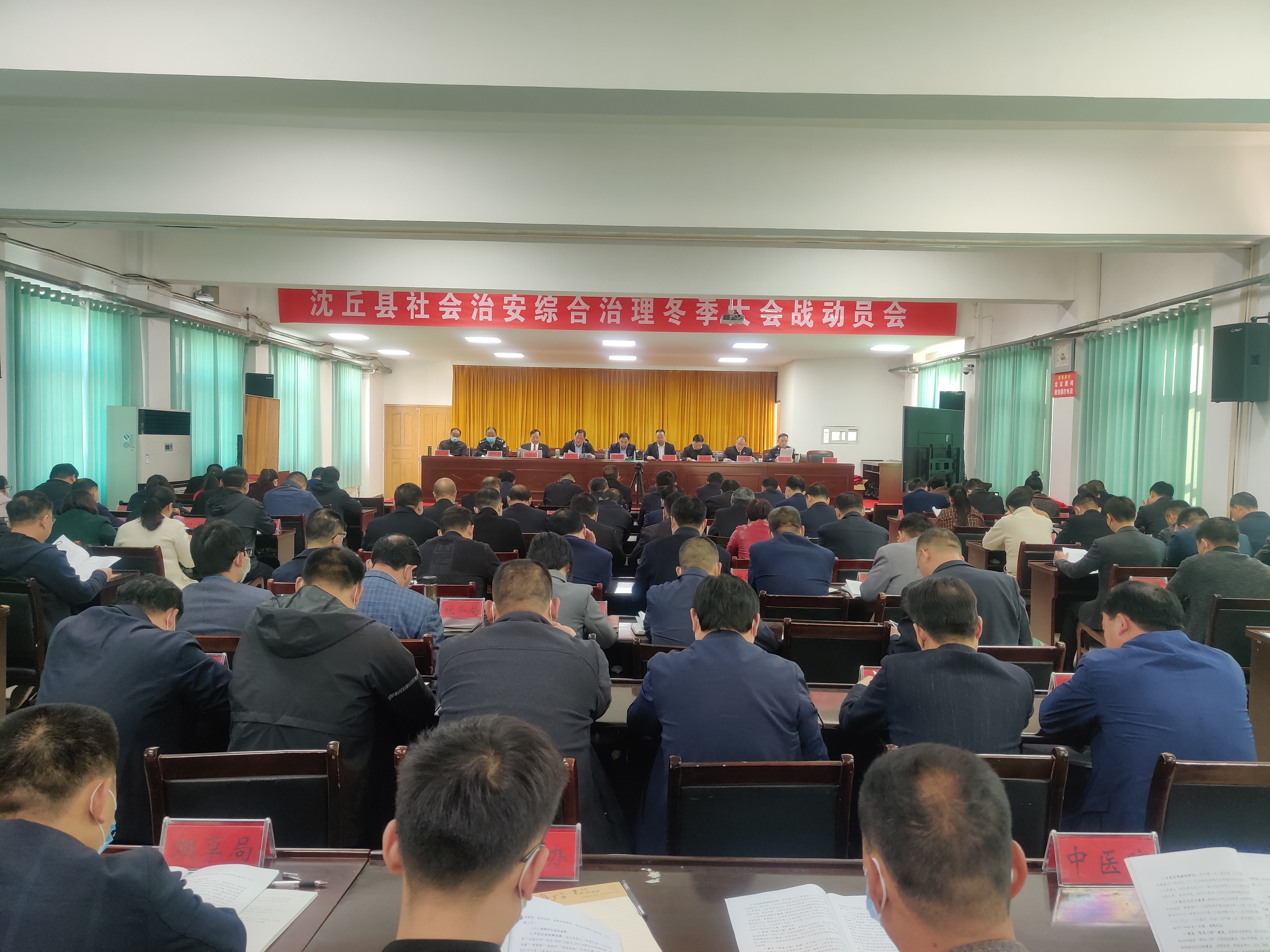 11月4日,沈丘縣組織召開社會治安綜合治理冬季大會戰(zhàn)動員會。縣領(lǐng)導(dǎo)賈慶偉、段然、張銳、鹿槐生、趙振勇、李世龍、李恒新、張彥、李廣其出席會議??h直各單位及各鄉(xiāng)鎮(zhèn)(辦)主要負(fù)責(zé)人參加會議。會上,副縣長張銳宣讀了《沈丘社會治安綜合治理大會戰(zhàn)工作方案》。