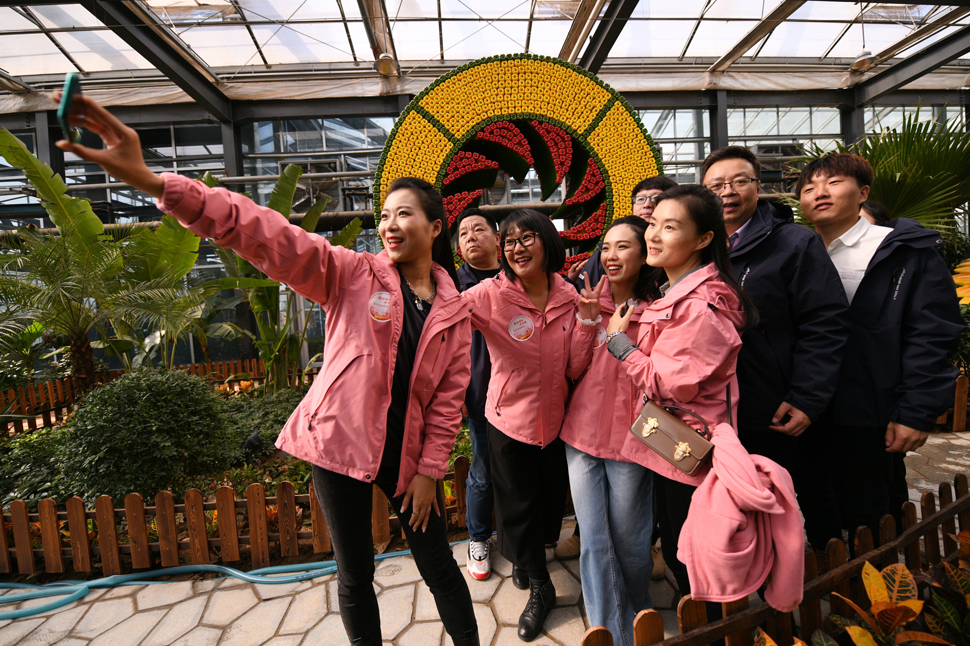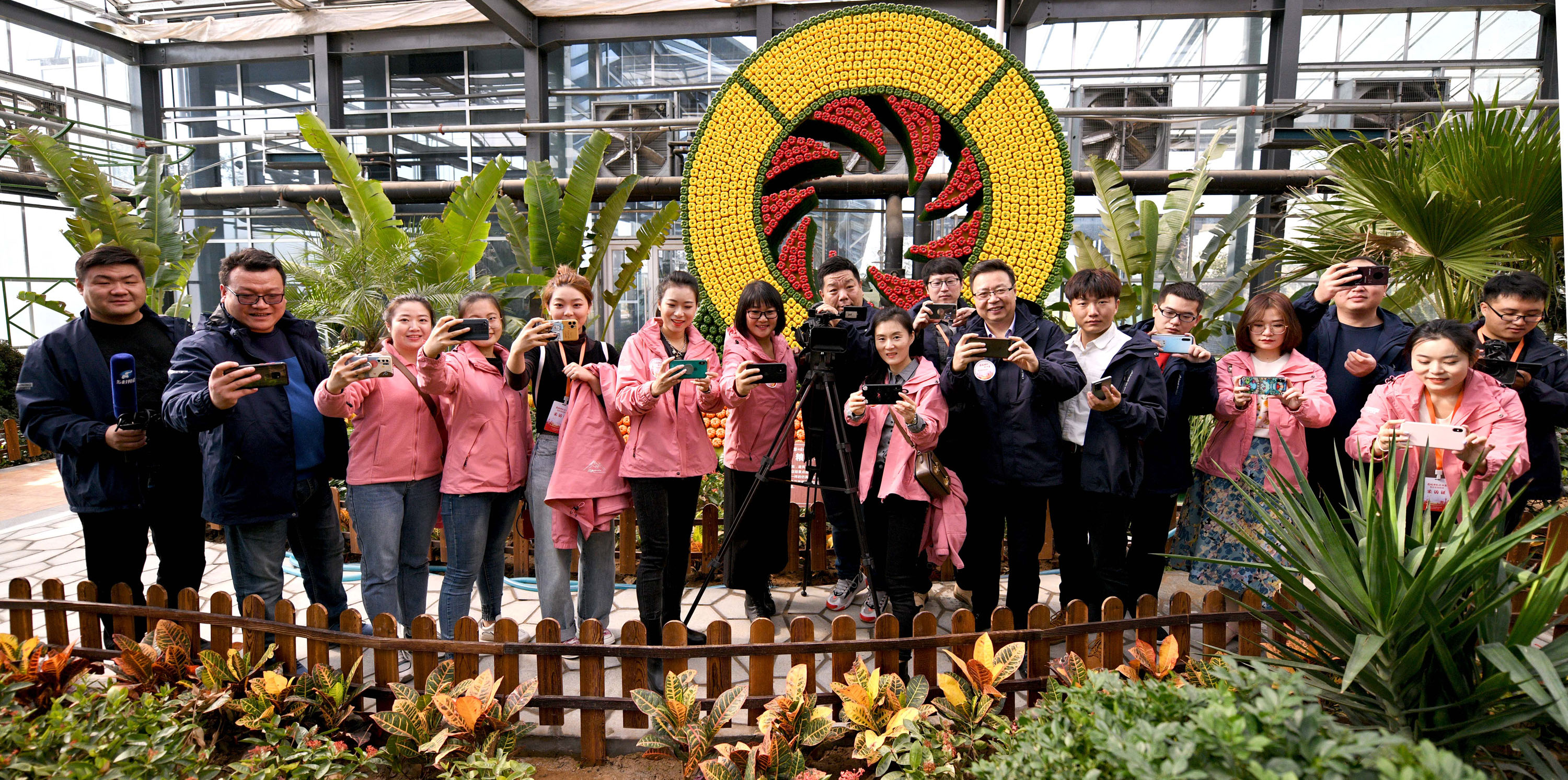 在種植蔬菜果樹的建業(yè)科技館采訪之余留個影