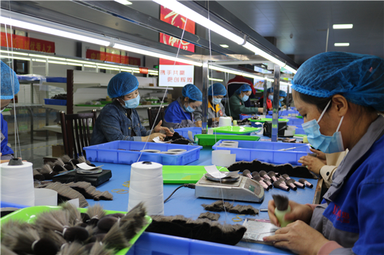 “從簡(jiǎn)單的梳羊毛到如今做高檔化妝刷,從產(chǎn)業(yè)鏈的末端做到頂端,從養(yǎng)家糊口到賺外匯,經(jīng)過多年的滾動(dòng)發(fā)展,鹿邑縣硬是把尾毛化妝刷這種‘小手藝’做成了助推縣域經(jīng)濟(jì)高質(zhì)量發(fā)展的‘大產(chǎn)業(yè)’。目前,全縣大大小小的化妝刷企業(yè)達(dá)1000多家,尾毛出口總量占全國(guó)化妝刷原毛出口的80%,年產(chǎn)羊毛3000多噸、尼龍毛9000多噸,生產(chǎn)各類化妝刷1.5億套,產(chǎn)品遠(yuǎn)銷20多個(gè)國(guó)家和地區(qū)。另外,作為尾毛的衍生產(chǎn)業(yè),羊毛衫加工產(chǎn)業(yè)近幾年的異軍突起,更是激活了全縣創(chuàng)業(yè)就業(yè)的一池春水。統(tǒng)計(jì)數(shù)字顯示,近幾年,鹿邑縣持續(xù)圍繞尾毛化妝刷特色產(chǎn)業(yè),強(qiáng)鏈延鏈補(bǔ)鏈,開展精準(zhǔn)招商,化妝刷及配套企業(yè)已發(fā)展到135家,實(shí)現(xiàn)產(chǎn)值50多億元,出口創(chuàng)匯21億;羊毛衫紡織企業(yè)發(fā)展到54家,有電腦織機(jī)6500臺(tái),年產(chǎn)各類針織服裝6000萬件,使鹿邑成為河南省最大的化妝刷生產(chǎn)基地、羊毛衫加工基地,帶動(dòng)全縣7.5萬人創(chuàng)業(yè)就業(yè)。