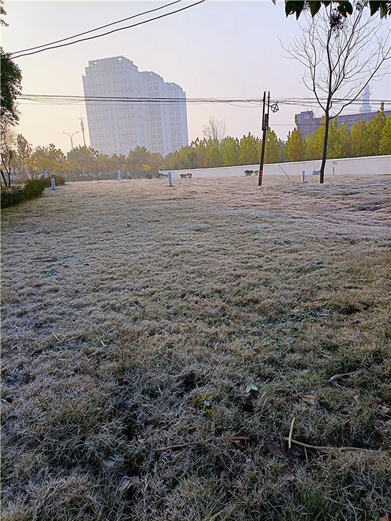 百草今何妝?茫茫著華霜。寒煙鎖素艷,疾步量路長。12月4日早晨,我市下霜了,潔白的華霜就像一層薄紗,在陽光的映照下分外美麗。