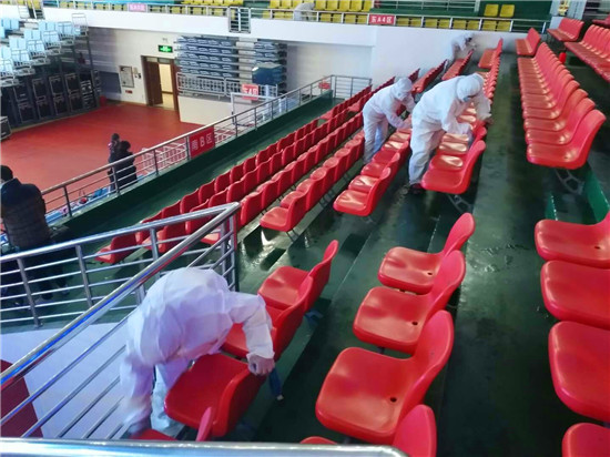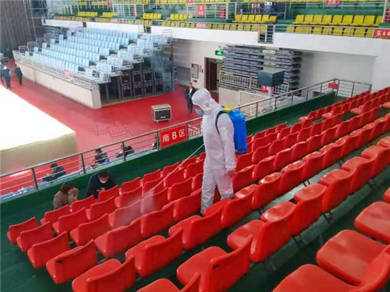 為確保疫情防控工作,保障第一屆周商大會順利進(jìn)行,11月26日至27日,30余名工作人員對市體育館內(nèi)外、周商產(chǎn)品展示展覽區(qū)進(jìn)行全面消毒殺菌,包括座椅,走廊,欄桿,門把手等,確保周商大會消殺工作不留死角。周口日報·周道客戶端見習(xí)記者 喬小納 攝