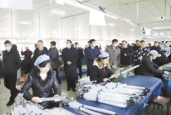 12月23日下午,在鄲城縣舉行的中國(guó)日用雜品工業(yè)協(xié)會(huì)制傘專(zhuān)業(yè)委員會(huì)五屆五次暨六屆一次會(huì)員代表大會(huì)中,來(lái)自全國(guó)制傘行業(yè)的精英們先后來(lái)到鄲城會(huì)客廳、傘業(yè)產(chǎn)業(yè)園、兄和家居、返鄉(xiāng)創(chuàng)業(yè)園、洺河森林樂(lè)園、鄲城一高、人民公園、體育場(chǎng)等地,實(shí)地感受鄲城高質(zhì)量發(fā)展成果和傘業(yè)發(fā)展?jié)摿?,共謀中國(guó)傘業(yè)的發(fā)展前景。 記者 徐松 攝