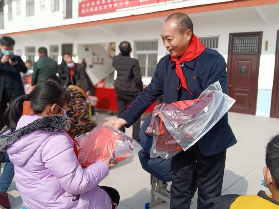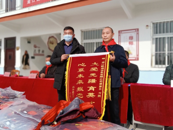 春節(jié)臨近,方凱自掏腰包6萬余元,購買164套新校服捐贈給西華縣艾崗鄉(xiāng)半截樓小學(xué),一如既往地將大愛播撒與傳遞。說起方凱的愛心行動,那是不勝枚舉。方凱10余年來堅(jiān)持幫貧濟(jì)困,每年都采取不同的方式,為貧困戶、貧困大學(xué)生、環(huán)衛(wèi)工、留守兒童、敬老院、貧困學(xué)校、福利中心智障孩子和災(zāi)區(qū)等進(jìn)行愛心捐助,已經(jīng)累計(jì)捐款捐物達(dá)1600多萬元。為了表達(dá)對方凱的謝意,西華縣艾崗鄉(xiāng)半截樓小學(xué)向方凱贈送了“大愛無疆育英才,心系未來報(bào)黨恩”的錦旗,同時(shí),還鄭重聘請方凱為該校名譽(yù)校長。