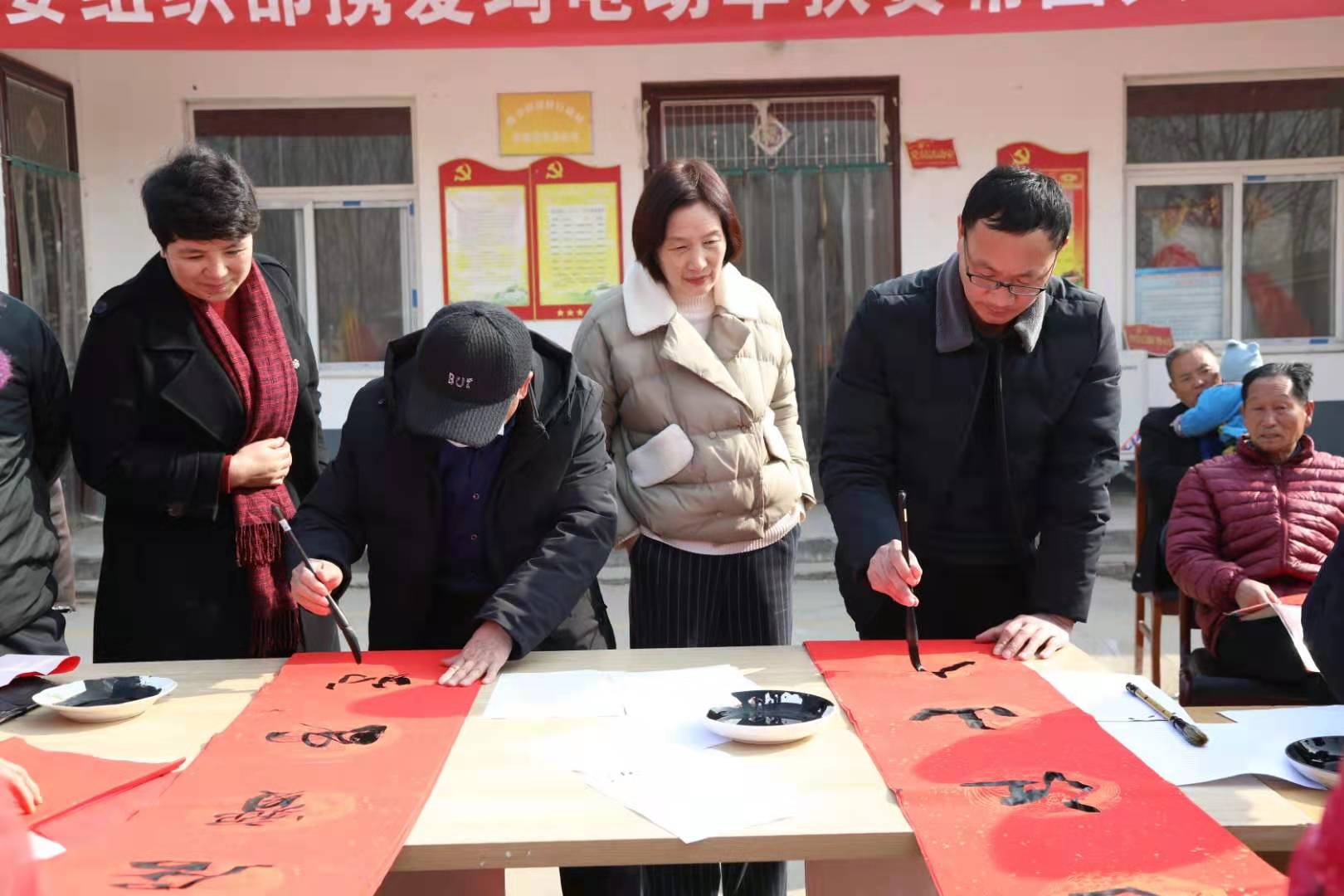 2月4日,扶溝縣委組織部聯(lián)合愛瑪電動車扶溝專賣店、張坡詩詞名人書畫館到駐村幫扶村——練寺鎮(zhèn)劉村行政村舉行扶貧幫困義寫春聯(lián)頌黨恩暨扶貧濟困慰問活動。聽說書法家到村里來寫春聯(lián),群眾一大早就排起了長隊,紛紛前來感受傳統(tǒng)文化的魅力和濃濃的年味。