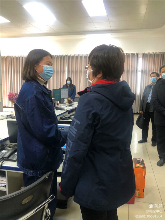 包哈達(dá)得知調(diào)度副班長(zhǎng)屈衛(wèi)霞帶病上崗,詳細(xì)詢問(wèn)其病情,親切同其握手交談,并特意叮囑她兼顧工作的同時(shí)照顧好自己,并提前給大家送去新春?jiǎn)柡颉?/p>