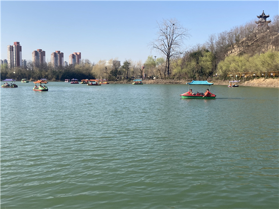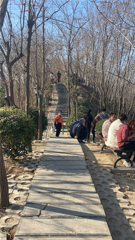 在槐香湖邊,年輕人三五結(jié)伴登上游艇,“坐船能到湖那邊的小島,島上也有槐樹,拍照肯定特別漂亮?!狈掂l(xiāng)大學(xué)生把七星島上的景色留在了自己的相機(jī)里。七星島與槐香湖相連的橋上,人潮擁擠,有的人席地而坐,觀賞著橋上的風(fēng)景。當(dāng)問(wèn)道在外市工作的王先生游玩感受時(shí),他回答到:“年后上班沒(méi)時(shí)間鍛煉身體,今天我把全家人帶來(lái)登山,呼吸一下新鮮空氣?!雹?