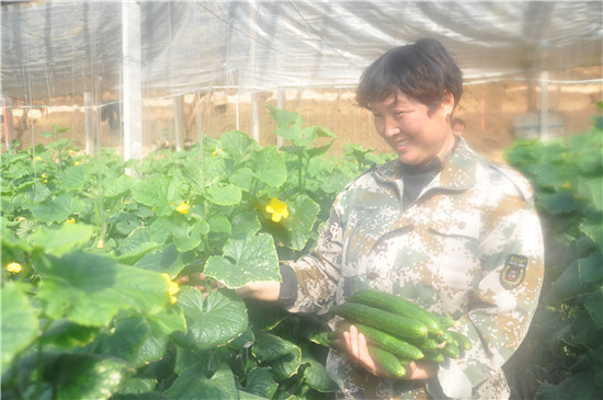 春節(jié)過后,我市新鮮蔬菜供需平穩(wěn),菜價(jià)未出現(xiàn)大幅度波動(dòng),其中本地蔬菜起到抑制菜價(jià)的作用。圖為扶溝菜農(nóng)正在自家大棚里采摘黃瓜。②8記者 金月全 通訊員 陳奎 攝