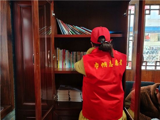 上午9點(diǎn),天空中偶有零星小雨,市民驛站里卻有幾位市民正在這里讀書,古色古香的書柜,整齊地?cái)[放著各類書籍,文學(xué)、百科、養(yǎng)生書籍俱全。周口市慈孝文化促進(jìn)會(huì)的志愿者每天都在值班,隨時(shí)打掃衛(wèi)生,為市民提供力所能及的幫助。