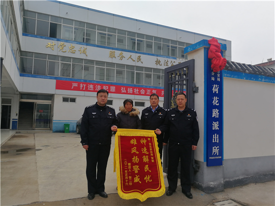 2月27日上午,一名群眾將寫(xiě)著“神速解民憂 雄風(fēng)揚(yáng)警威”錦旗送到川匯公安分局荷花路派出所民警手中,感謝民警們的辛苦付出。錦旗背后的故事還得從一條抖音說(shuō)起。