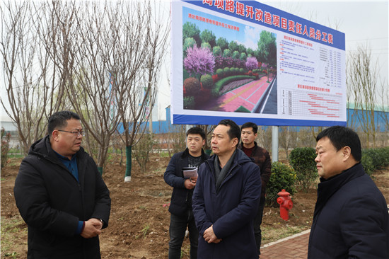 為督導(dǎo)綠化建設(shè)工作落實(shí)情況,推進(jìn)綠化建設(shè)工程進(jìn)度,3月11日,周口港區(qū)管委會主任程若光率隊(duì)到轄區(qū)各綠化建設(shè)項(xiàng)目地點(diǎn)實(shí)地督導(dǎo)檢查,并召開工作推進(jìn)會,對該項(xiàng)工作做進(jìn)一步安排部署。港區(qū)黨委委員、管委會副主任李翔及項(xiàng)目責(zé)任單位、施工單位負(fù)責(zé)人參加。