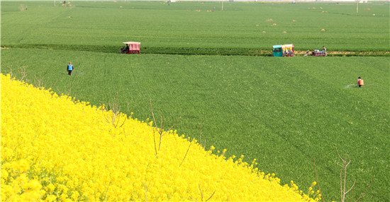3月24日,河南省商水縣郝崗鎮(zhèn)北社村村民在管理麥田。春分到來,天氣變暖,鮮花盛開,素有“豫東糧倉”之稱的商水縣進(jìn)入春耕備耕忙碌時(shí)節(jié),村民紛紛走向田野,伴著花香開展春季農(nóng)業(yè)生產(chǎn),田間地頭一片熱火朝天的繁忙景象。②7