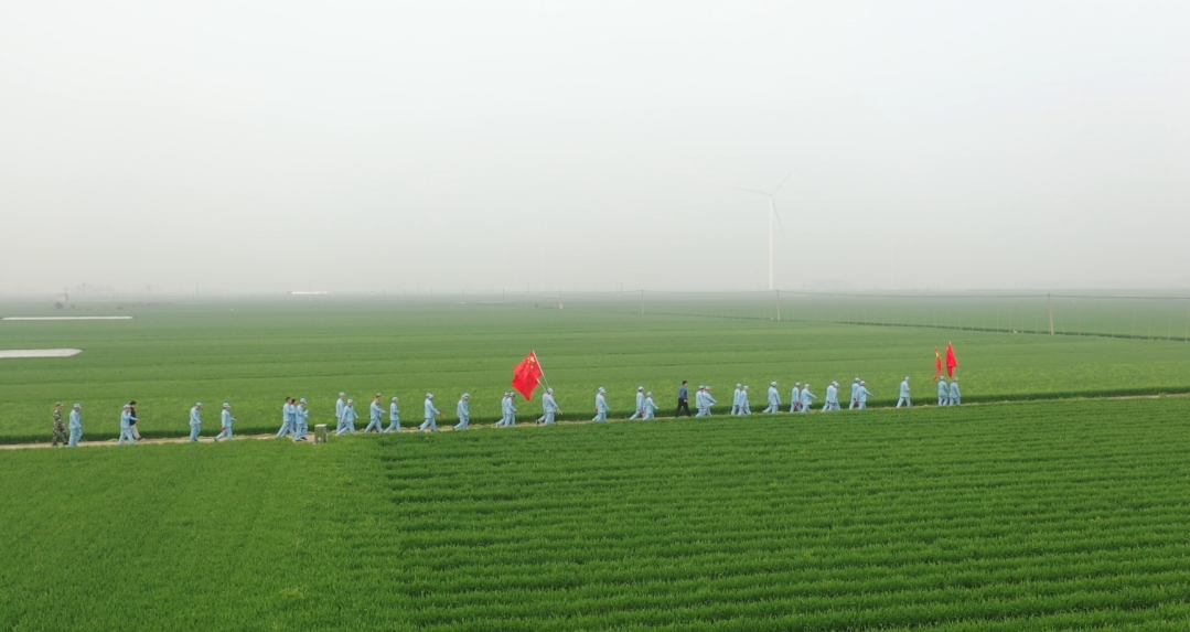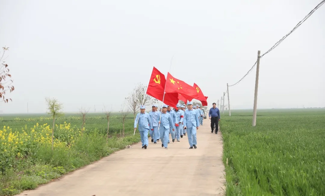 “我一定要跟著大部隊走,絕不掉隊,不給紅軍前輩抹黑?!眲倓傋鐾晔中g(shù)的七一村黨支部書記何治安斬釘截鐵地說。在七二村,熱情好客的七里倉群眾不僅給“大軍”送來了西紅柿、黃瓜、茶雞蛋、香蕉等補給品,還表演了“祖國你好”、“美麗生活”等扇子舞,再現(xiàn)了當(dāng)年紅軍到哪都受人民群眾擁戴的情景,同志們的疲憊一下子煙消霧散.....按照拓展行程安排,在盆李村的“周口市第一個農(nóng)村黨支部舊址”,同志們進(jìn)行了參觀瞻仰和重溫入黨誓詞等活動,回顧了歷史,緬懷了先烈,震撼了心靈,錘煉了黨性。