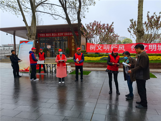 在活動(dòng)現(xiàn)場(chǎng),城管志愿者頭戴小紅帽,身穿紅馬甲,向過往群眾發(fā)放講解《周口市文明行為促進(jìn)條例》,耐心解答市民提出的問題,以實(shí)際行動(dòng)倡導(dǎo)文明、傳播文明,展現(xiàn)城管志愿者的積極風(fēng)采和良好的精神風(fēng)貌。②10