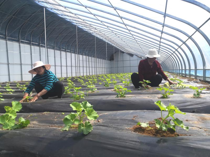 “當下,正逢‘吊秧’香瓜生長旺盛的時候,這幾天,我和馮大姐一直在大棚里忙活,每天有事兒干、有人陪說話,還可以掙到60元的工錢,就在家門口,多好?。 ?月8日,在半截樓村新建的溫室大棚內(nèi),65歲的李愛蓮一邊忙著為瓜秧打岔,一邊對記者說。