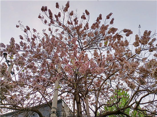 “莫道春花已殆盡,點(diǎn)滴桐花春不老?!卑倩?zhēng)艷,熱鬧了整個(gè)春天。就在萬(wàn)紫千紅紛紛謝幕的時(shí)候,梧桐花開了。