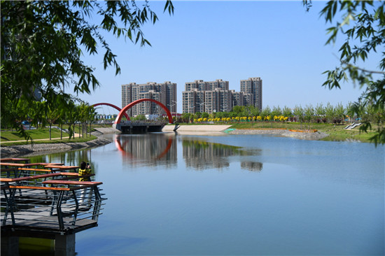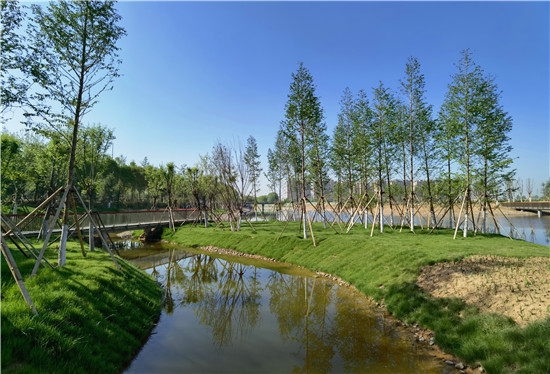 眼下雖不是詞中所描繪的初春時節(jié),但是暮春的水系風光更具詩情畫意。女媧路魚翔湖是一處以水凈化、水景觀、水科普為主的濱河濕地游園。漫步于此,新綠點綴其中,步道曲徑通幽,河水清澈透明,頓覺神清氣爽。沙河玉盤落珠節(jié)點,曲廊環(huán)繞,波光鱗鱗,垂柳慢舞,河流猶如飄帶蜿蜒流淌,一路步行聞花香聽鳥鳴,繪出一幅唯美畫卷。②9