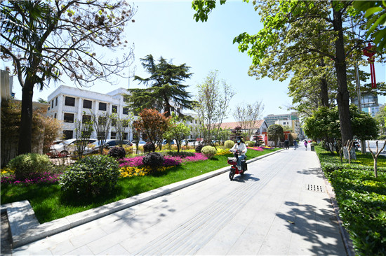 拆墻透綠、見縫插綠,小小空間、自有風景。每次路過這里,清風徐徐,清香撲鼻。鵝黃、碧綠、深紅、淺紅、雪白、藍紫……樹木和花草呈現出斑斕的色彩,讓人看得心情愉悅。這姹紫嫣紅的花兒不僅開在了游園里,更是開在了市民的心田里。