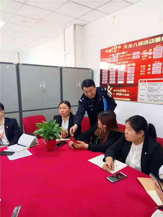 圖為王朝偉深入企業(yè)宣傳反電詐知識。