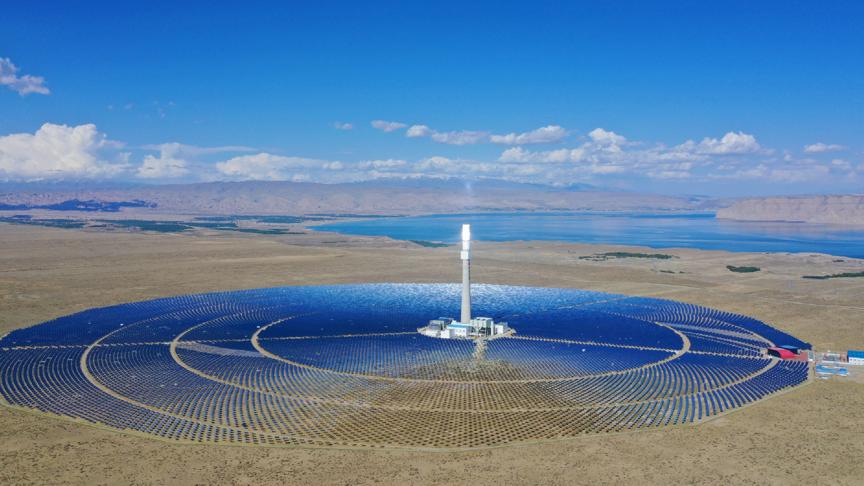 圖5:5萬千瓦熔鹽塔式光熱發(fā)電項目。(中電建青海共和50MM塔式光熱發(fā)電項目部)