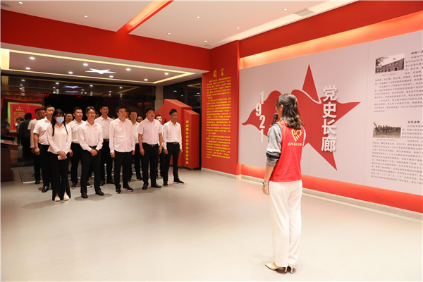 西華縣委黨員教育中心的紅色長廊里,一幅幅圖畫,一段段文字,見證著中國共產(chǎn)黨從誕生,到發(fā)展,到壯大,到帶領(lǐng)中國人民走向勝利的光輝歷程。通過志愿者講解員的精彩講解,全體黨員詳細(xì)了解了紅船精神、井岡山精神、長征精神、延安精神、西柏坡精神等色彩鮮明的紅色文化。