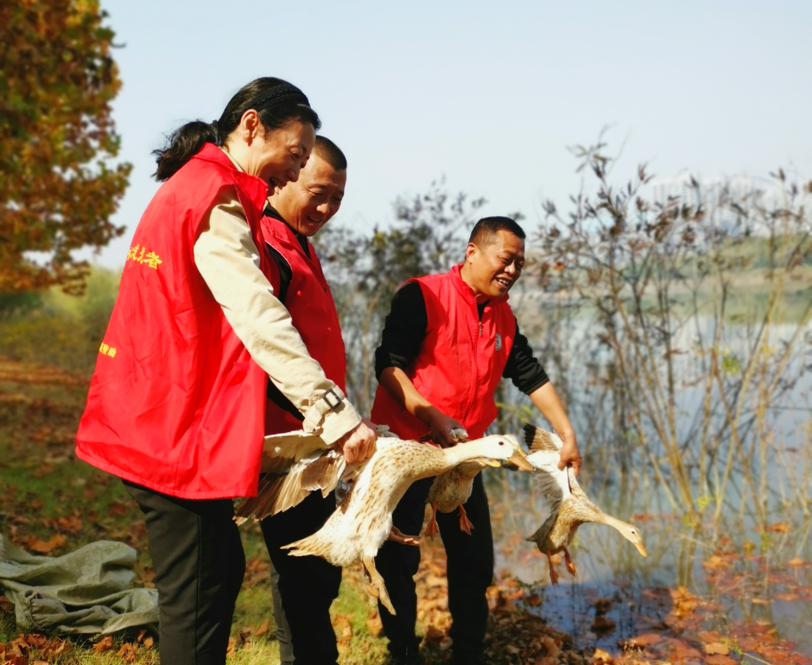 10月30日上午,周口報(bào)業(yè)傳媒集團(tuán)志愿者們?cè)谥参飯@舉行放生儀式。據(jù)悉,此次放生的10只翎花鴨是今年龍舟賽翎船撲鴨比賽用鴨,經(jīng)過(guò)戶(hù)外馴化,已經(jīng)適應(yīng)野外生存。小鴨回歸大自然,與湖光山色和諧共生。③