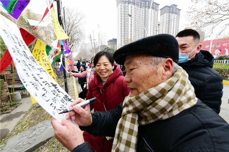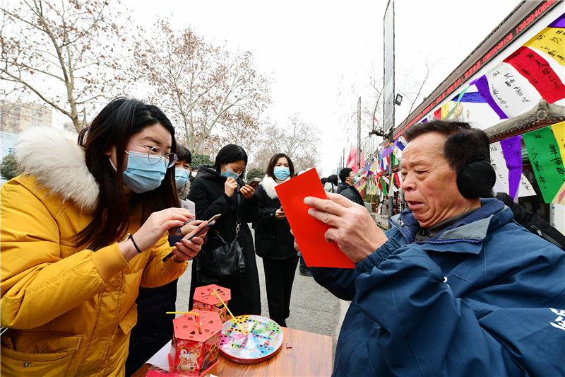 2月15日上午9時,由周口市文化廣電和旅游局、周口市文物局主辦,市博物館、市文物保護中心、市民協(xié)、華威民俗文化博物苑承辦,市民協(xié)燈謎學專委會、川匯區(qū)民協(xié)、川匯區(qū)燈謎學會協(xié)辦的元宵節(jié)燈謎競猜活動,主會場在市文化藝術中心廣場,分會場在華威民俗文化博物苑,吸引謎語愛好者踴躍競猜,甚為熱鬧。在華威民俗文化博物苑分會場的謎語現(xiàn)場,舉辦方以傳統(tǒng)形式進行,備了300條謎語,用毛筆將謎語寫在紅藍綠白紙張上,懸掛門前,讓市民競猜,氣氛熱烈濃厚。舉辦方還特意準備了跳繩、網球拍、乒乓球拍、飛鏢盤、跳棋等600份獎品,獎給猜中謎底的市民。①2