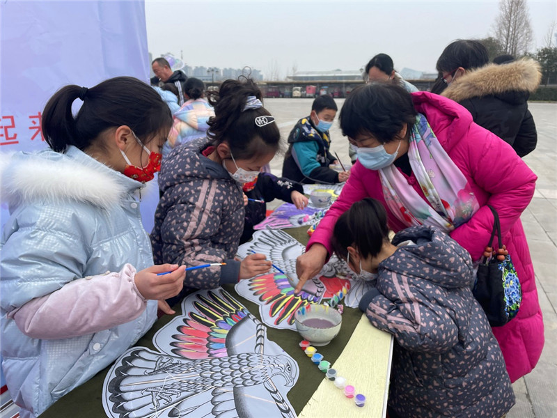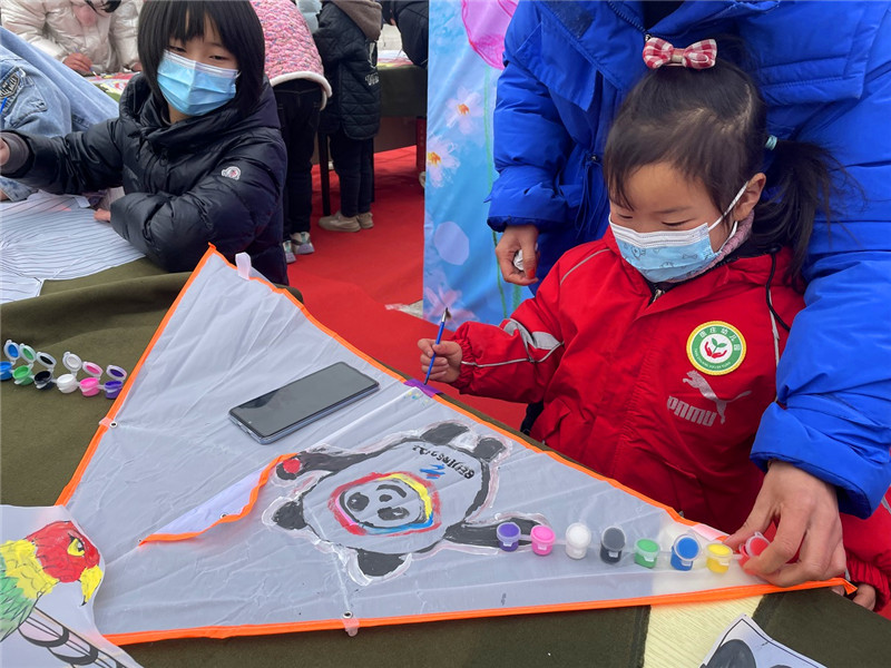 “媽媽你看,我畫的冰墩墩可愛嗎?”2月15日上午,“放飛春天——兒童DIY手繪風箏”活動在周口市文化藝術(shù)中心西廣場如期舉辦。一名身穿紅色棉服的小女孩在媽媽的幫助下,創(chuàng)作完成了一只畫有“冰墩墩”形象的手繪風箏。