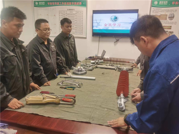 為把學習落到實處,提高班組成員主動學習的積極性,在當日的學習中,經驗豐富的老師傅還手把手地帶領青年員工對金具進行現場組裝。他們積極討論,相互切磋,取長補短。