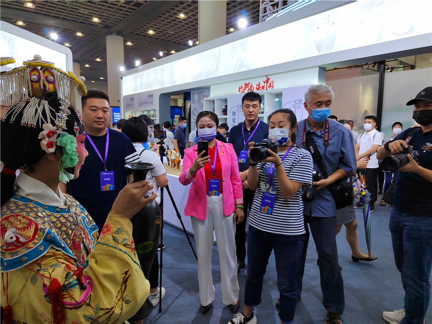 中國非物質(zhì)文化遺產(chǎn)博覽會(huì),每兩年舉辦一屆,是非遺領(lǐng)域的全國性重要品牌活動(dòng),已成為展示非遺保護(hù)成果、宣傳非遺保護(hù)理念、引領(lǐng)非遺保護(hù)工作的重要平臺(tái)。本屆非物質(zhì)文化遺產(chǎn)博覽會(huì)為期5天,河南省有16個(gè)非遺項(xiàng)目、4個(gè)非遺美食企業(yè)參展,布置在文化底蘊(yùn)深厚的“行走河南·讀懂中國”展區(qū)?;搓柡谔?、仰韶彩陶、唐三彩、魯山窯、汝瓷、鈞瓷、登封窯、當(dāng)陽峪絞胎瓷、澄泥硯、浚縣泥咕咕燒制技藝在展廳一一亮相?;搓柡谔諢萍妓囀〖?jí)傳承人張輝攜帶的部分作品以大氣、精美的文化底蘊(yùn)深深吸引著人們觀賞,各派非遺戲曲傳人也紛紛捧起他的黑陶作品展示中原古老的黑陶藝術(shù)文化。②15