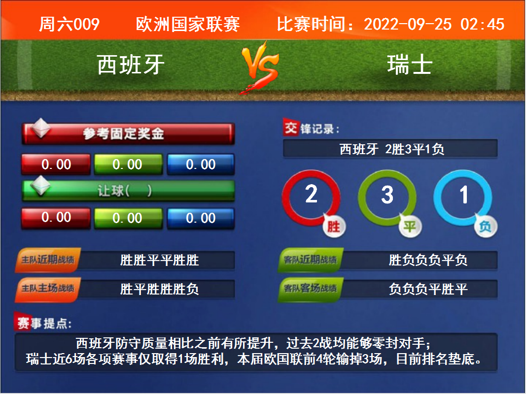周六009 歐洲國家聯(lián)賽 西班牙VS瑞士