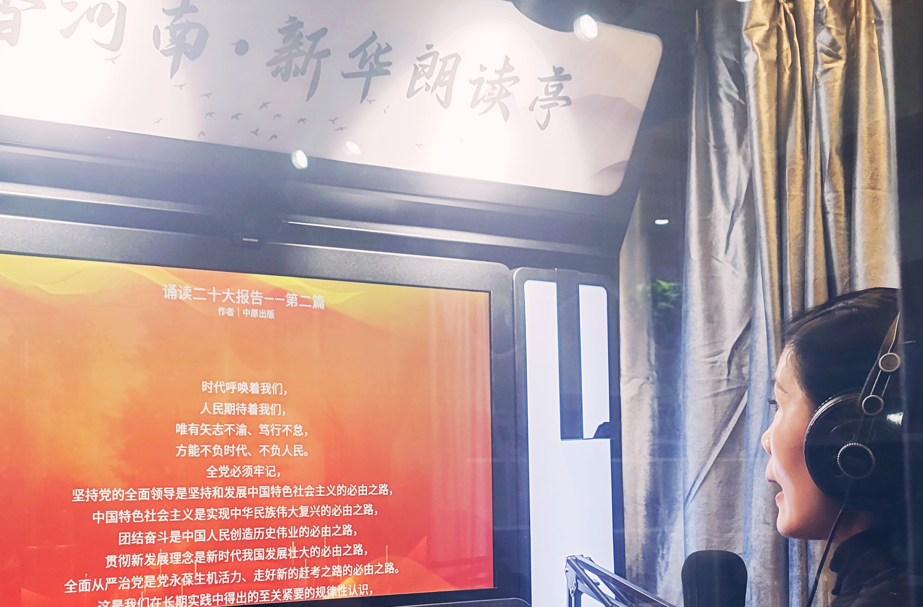 據(jù)了解,此次誦讀活動時間為10月26日至11月30日?;顒又饕x了黨的二十大報告中十五個章節(jié)的部分文字作為誦讀素材,誦讀者進(jìn)入朗讀亭后,只要打開手機(jī)進(jìn)行微信登錄,就可以選擇喜歡的片段進(jìn)行誦讀,最后還可以在結(jié)尾處針對誦讀內(nèi)容發(fā)表切身感悟。